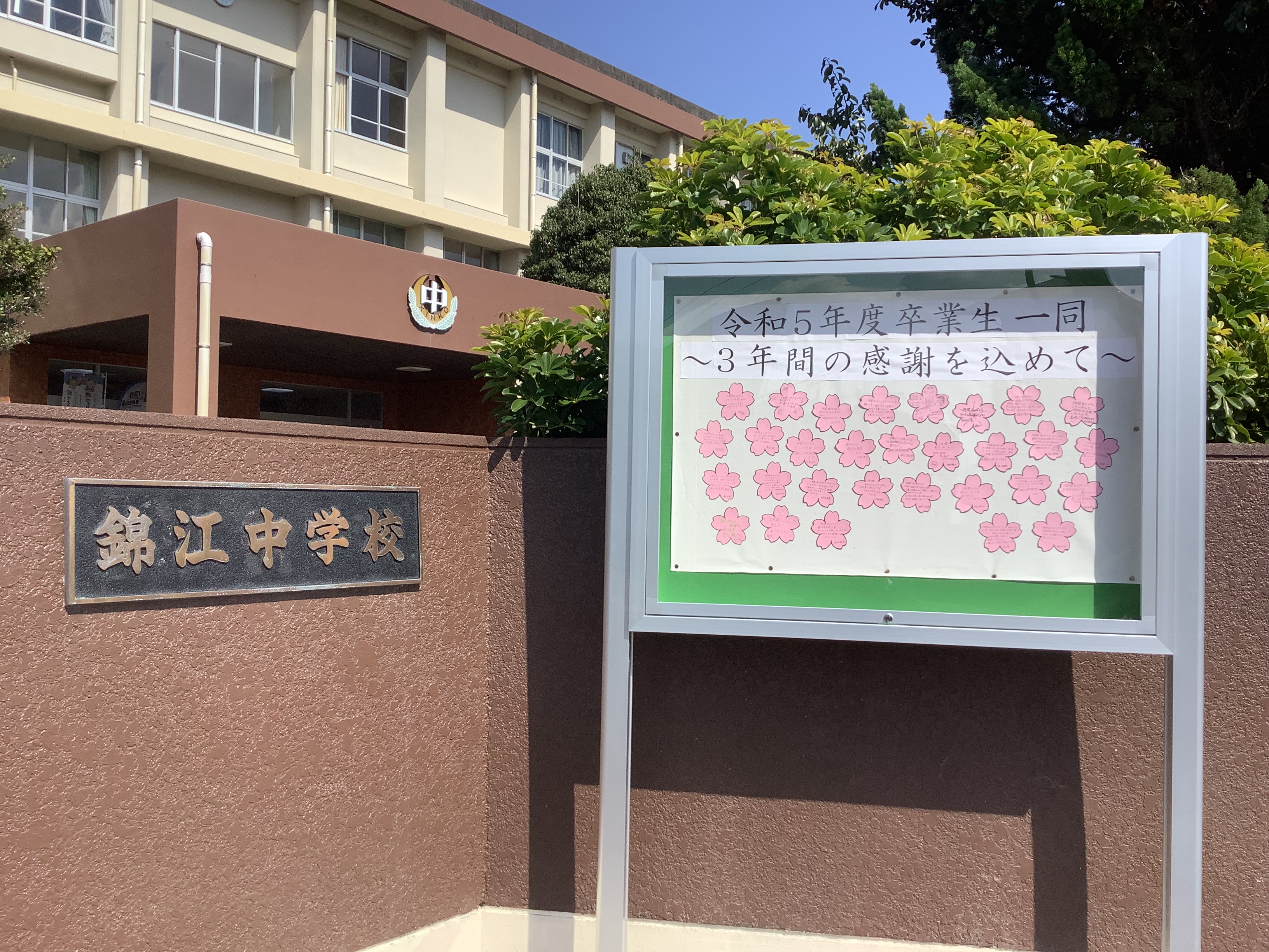 大掃除後,辞任式を行いました。先日卒業の3年生だけでなく,現高校生らも参加がありました。今回の異動で5名の方が転退職されます。それぞれの方々が,これまでの錦江中での思い出や生徒や保護者への感謝や期待の言葉を話してくださいました。最後は,花道で先生方をお送りしました。新天地でもお元気でお過ごしください。今までありがとうございました。